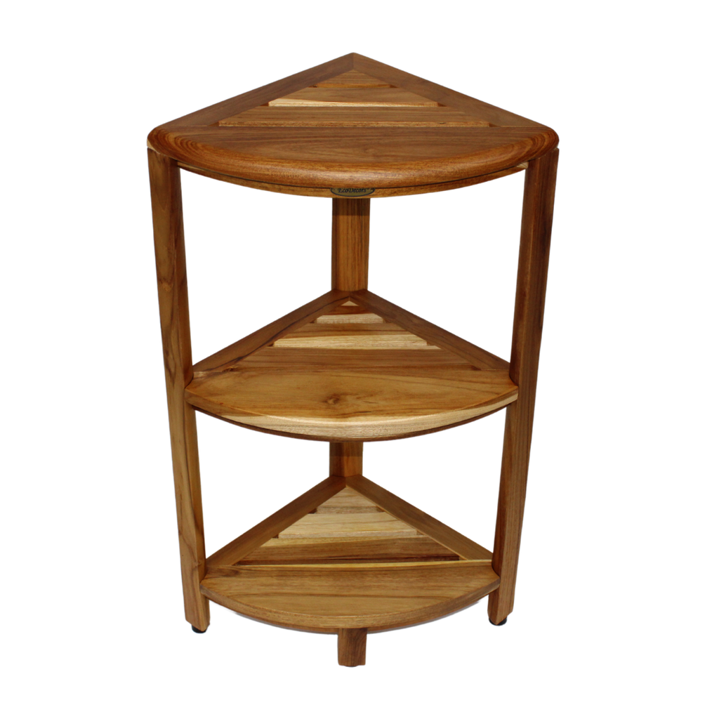 EcoDecors® SnazzyCorner® 27.5"H Teak Wood 3-Tier Corner Shelf – EarthyTeak Finish